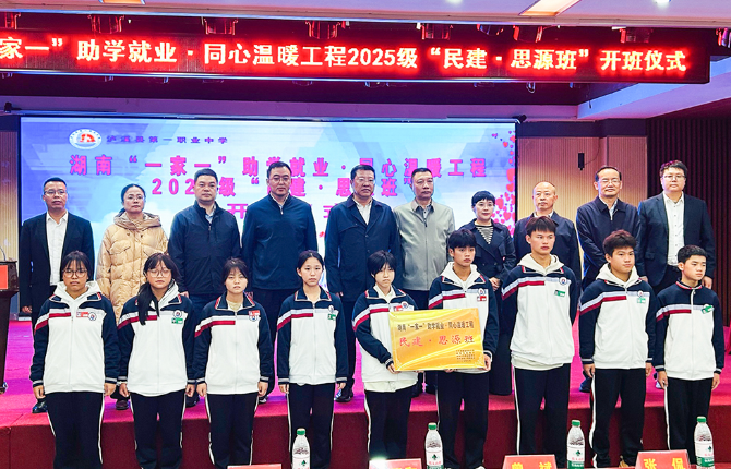 近日,湖南“一家一”助学就业·同心温暖工程2025级“民建·思源班”开班仪式在泸溪县举行。仪式上,民建湖南省委会向泸溪县第一职业中学捐赠20万元助学资金,省委统战部为“民建·思源班”授牌。湖南“一家一”助学就业·同心温暖工程是由省委统战部、省教育厅牵头,各民主党派、无党派、民族宗教界等社会各界广泛参与的爱心公益助学项目。