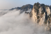 云海翻腾,赤壁生辉。冬日清晨的泸溪县辛女峰,初升的太阳为这百丈峭壁镀上了灿烂的金边。俯瞰沅江蜿蜒,云雾如轻纱抚过山的棱角,勾勒出一幅恬淡的“云端仙境”。