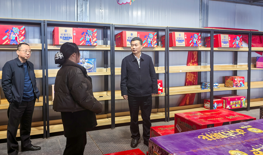 2月20日,县委书记符家波到部分烟花爆竹零售点、连续生产企业和乡镇值班室,实地调研督导春节期间安全生产、企业运行以及值班值守情况,向坚守岗位的一线干部职工致以节日问候和新春祝福。在武溪镇政府值班室,符家波与值班人员亲切交谈,详细了解春节期间值班安排、应急处置流程等情况,对大家坚守岗位、履职尽责的奉献精神表示感谢。